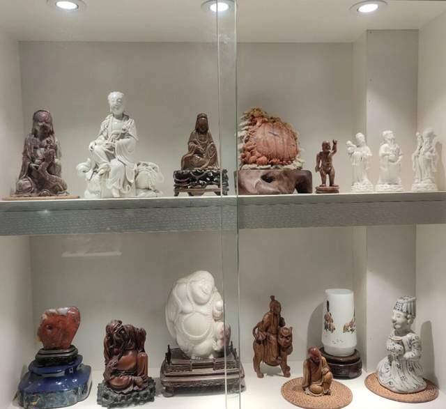 林昊的家四处都是宝物,这里俨然是一个私人博物馆。进门显要处悬挂的是吴昌硕的书法作品,楼梯转角处悬挂着岭南派大师黎雄才的 “何必见千里,自然生远心” 书法作品、郎静山的摄影原作、清代何维朴的书法作品等。而书房兼茶室的空间则放满了他四处收罗或竞拍来的精品,许多是博物馆级别的。这里有木雕、石雕、瓷瓶、铜壶、紫砂器、牌匾、漆画、字画等,琳琅满目。这里的每一件宝贝以及主人寻宝的过程都有故事,它们在默默告诉我们收藏的意义。其实收藏就像图书一样,当你有了迷茫,翻开书页的时候,所有的东西都活过来了,并且为你点起一盏明灯,照亮你生命的路。