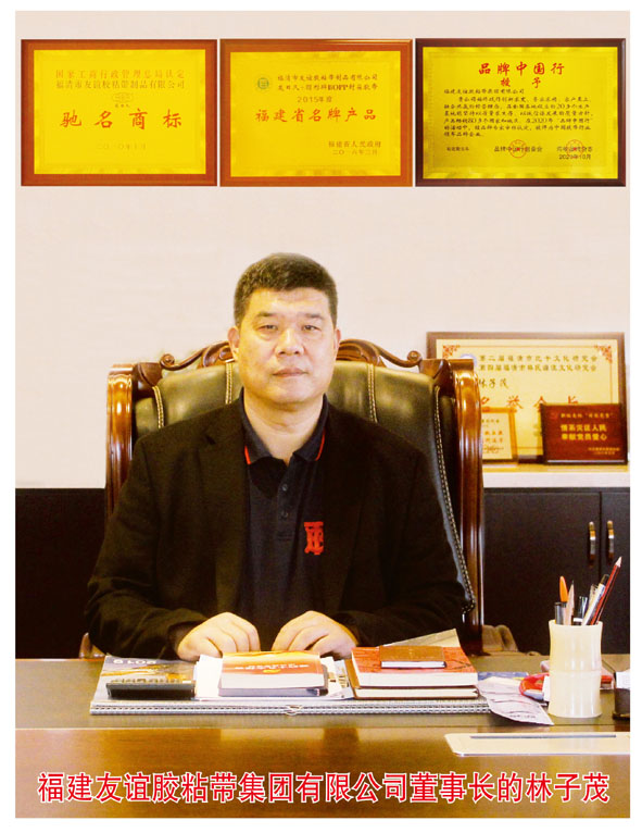“追求卓越、创造完美、树立品牌、服务客户”是友谊集团的质量管理方针。为了进一步提高产品科技含量,林子茂经常带研发人员到广东、上海、德国、加拿大等知名企业学习考察,学习先进管理经验,培养了一支精诚团结、奋进敬业的专业化管理团队和高素质的员工队伍,形成了创品牌争市场、保品牌促发展的良性循环。在他的带领下,友谊集团致力于内部管理体系改革,2002年以来历次通过了ISO9001质量管理体系认证和ISO18001环境管理体系认证,全过程对生产设备及生产流程进行全方位管控和产品在线质量检测,产品出厂合格率达到100%。集团企业历年来获得“中国驰名商标”、“福建名牌产品”、“高新技术企业”、“福建省科技型企业”、“福建省包装龙头企业”、“中国胶粘带行业典范企业”等多项荣誉称号。今年6月,入选2020年福建省工业和信息化省级龙头企业名单。