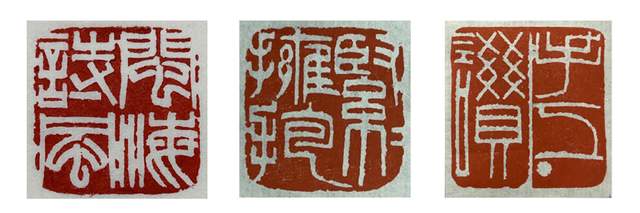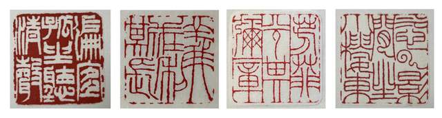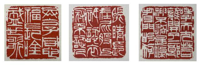 业内评价陈金光的篆刻:刀刀讲究,笔笔得法。朱白各文,俱臻神妙。边款神隽味永。颇得明清韵味,亦具秦汉遗风。 还有:施朱布白,巧思妙构,轻松自在,涉刀成趣。款识四体兼擅,隽爽遒劲,出色当行,游刃有余。 通过中文专业八级水平测试的同学都知道,这么长的两段话,翻译成白话文就是:厉害。